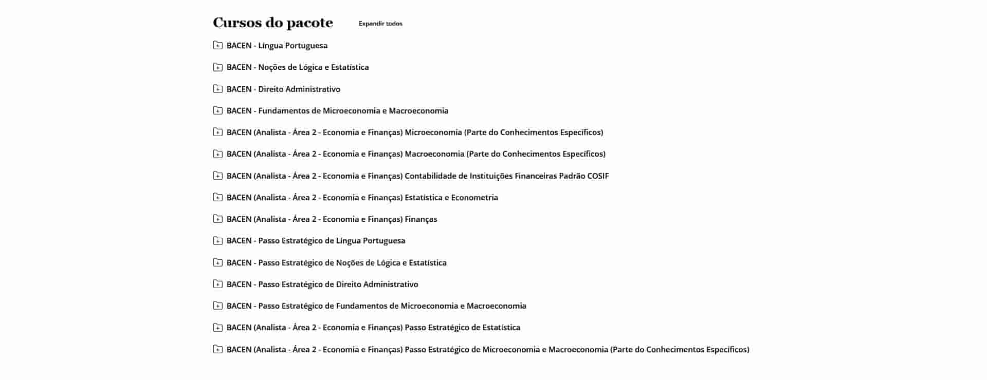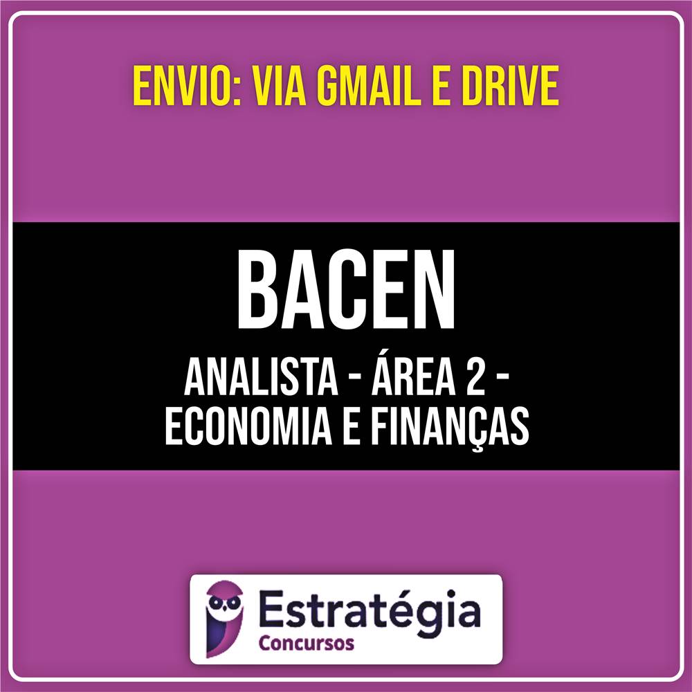O curso é completo? Sim. O Rateio BACEN – Analista – Área 2 – Economia e Finanças (2026) – ESTRATÉGIA inclui todas as disciplinas exigidas, além de bônus exclusivos de simulados.