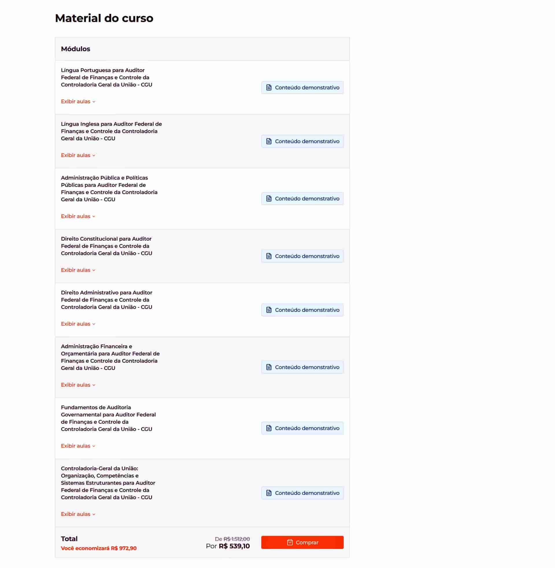 O curso é completo? Sim. O Rateio CGU – Auditor Federal de Finanças (2026) – DIREÇÃO inclui todas as disciplinas exigidas, além de bônus exclusivos de simulados.