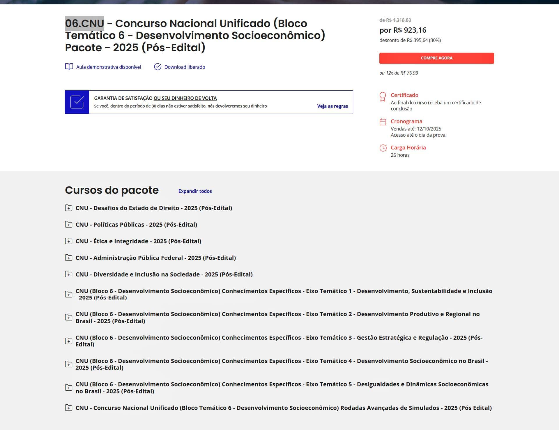 ✅ O que está incluído no rateio do curso CNU 2025 (Pós-Edital) – Bloco 6: Desenvolvimento socioeconômico | ESTRATÉGIA?