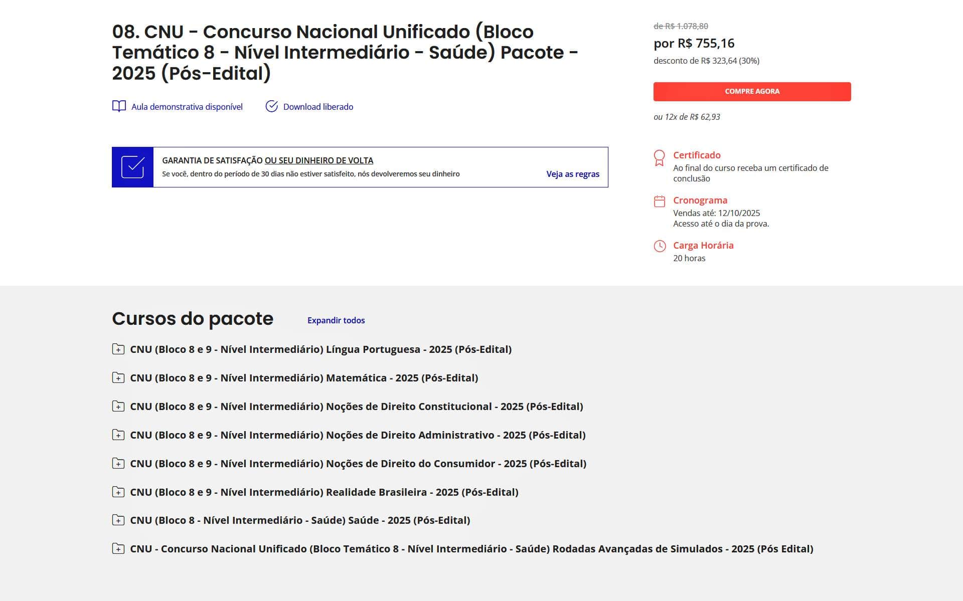 ✅ O que está incluído no rateio do curso CNU 2025 (Pós-Edital) – Bloco 8 – Intermediário – Saúde | ESTRATÉGIA?