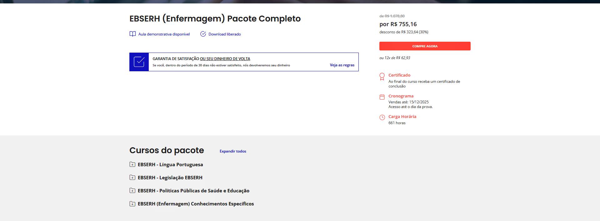 ✅ O que está incluído no rateio do curso EBSERH 2025 – Enfermagem – ESTRATÉGIA?