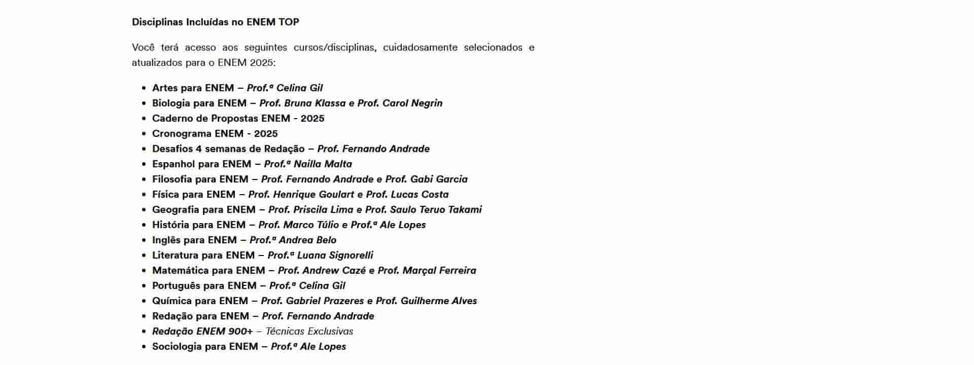 O curso é completo? Sim. O Rateio ENEM TOP – Preparação Intensiva (2026) – ESTRATÉGIA VESTIBULARES inclui todas as disciplinas exigidas, além de bônus exclusivos de simulados.