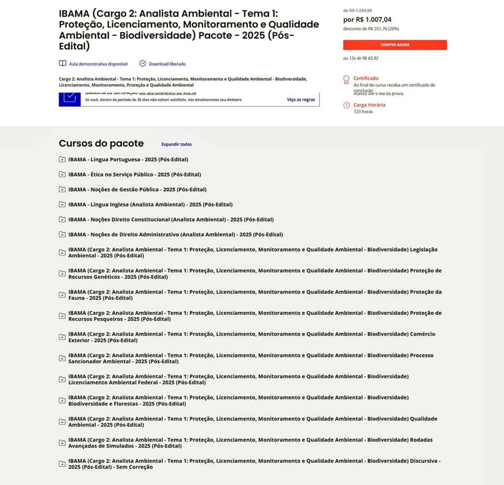 O rateio do curso IBAMA PÓS-EDITAL 2025 – Analista Ambiental – Tema 1 – ESTRATÉGIA é composto por VIDEOS e PDFS. O envio é feito via GMAIL e Drive.