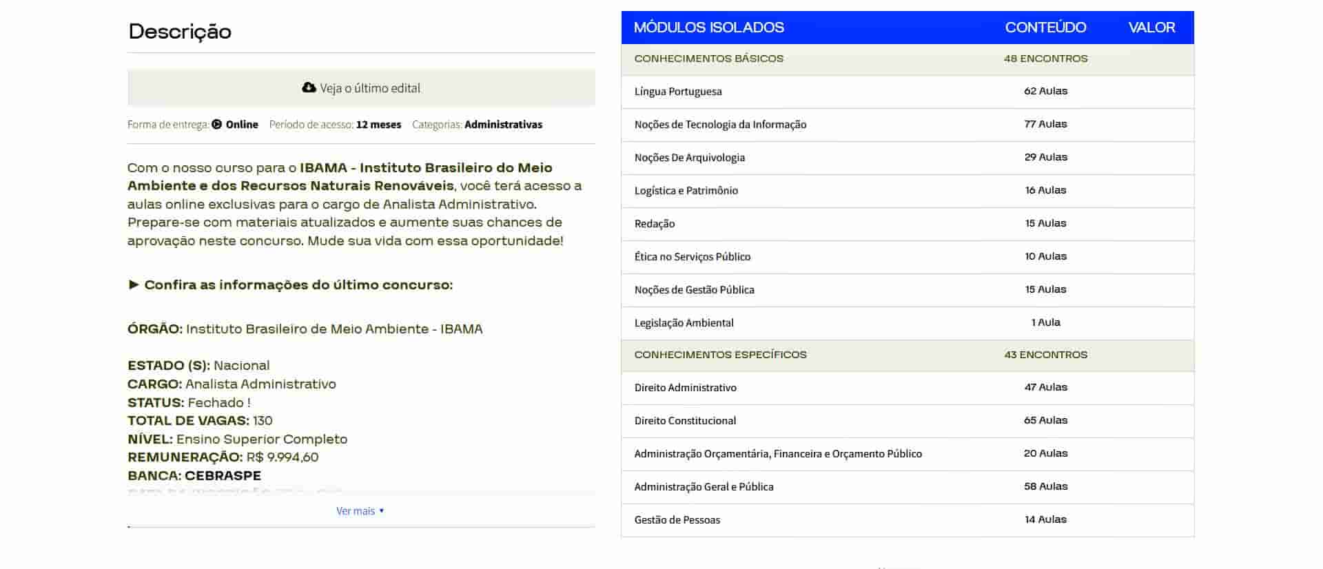 O curso é completo? Sim. O Rateio IBAMA – Analista Administrativo (2026) – ALFACON inclui todas as disciplinas exigidas, além de bônus exclusivos de simulados.