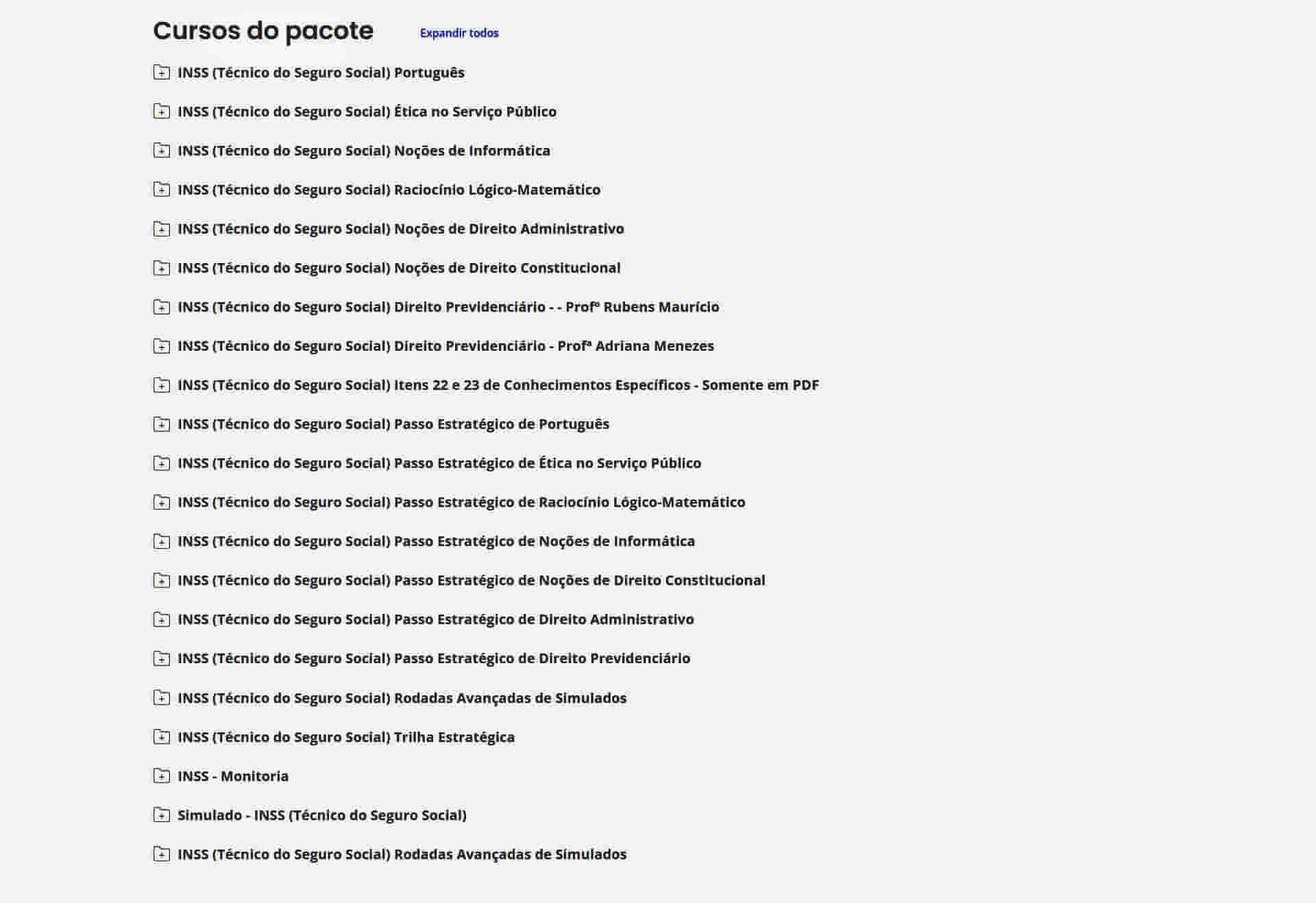 ✅ O que está incluído no rateio do curso INSS 2025 – Técnico do Seguro Social – ESTRATÉGIA?