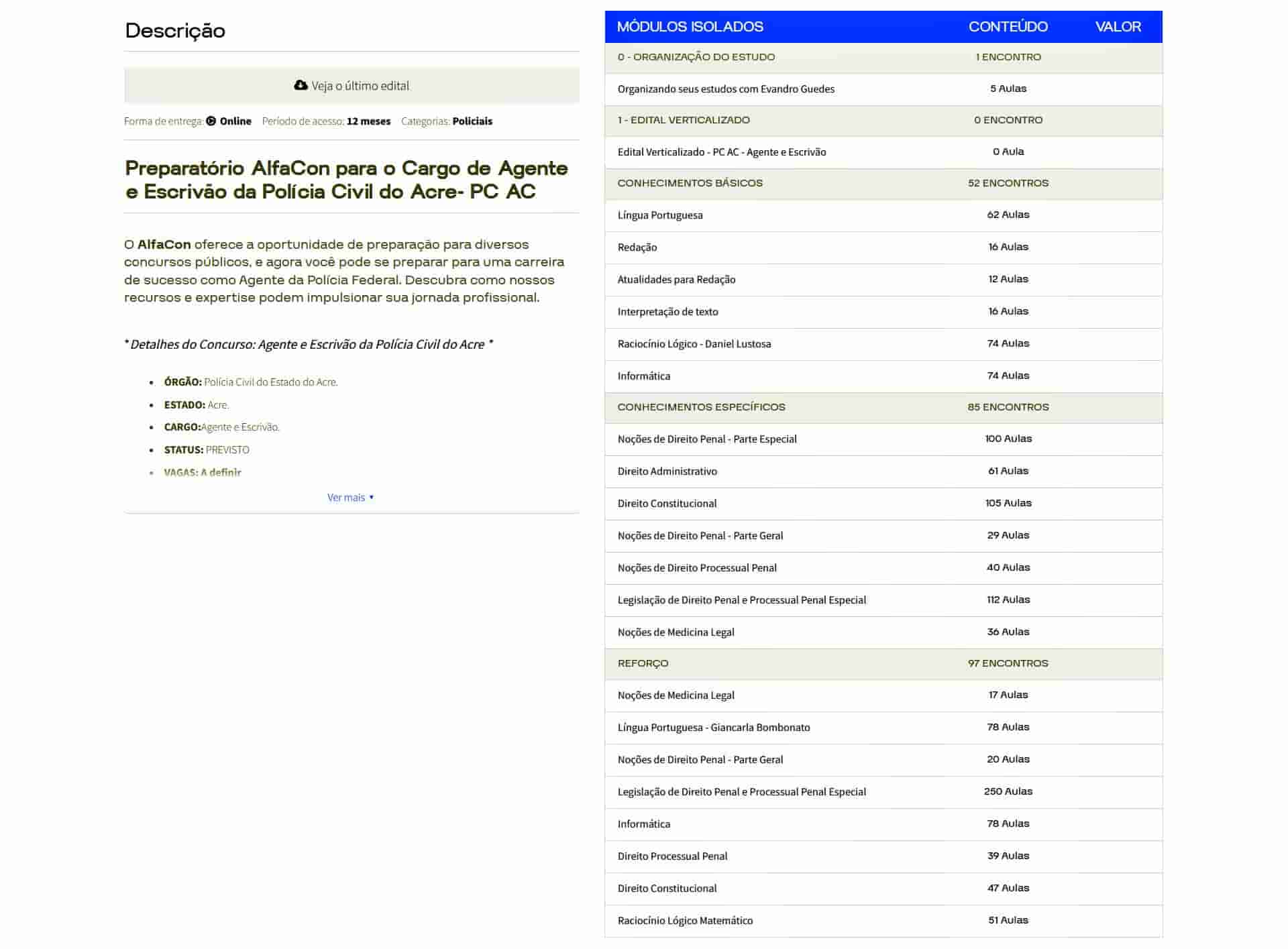 O curso é completo? Sim. O Rateio PC AC – Agente e Escrivão (2026) – ALFACON inclui todas as disciplinas exigidas, além de bônus exclusivos de simulados.