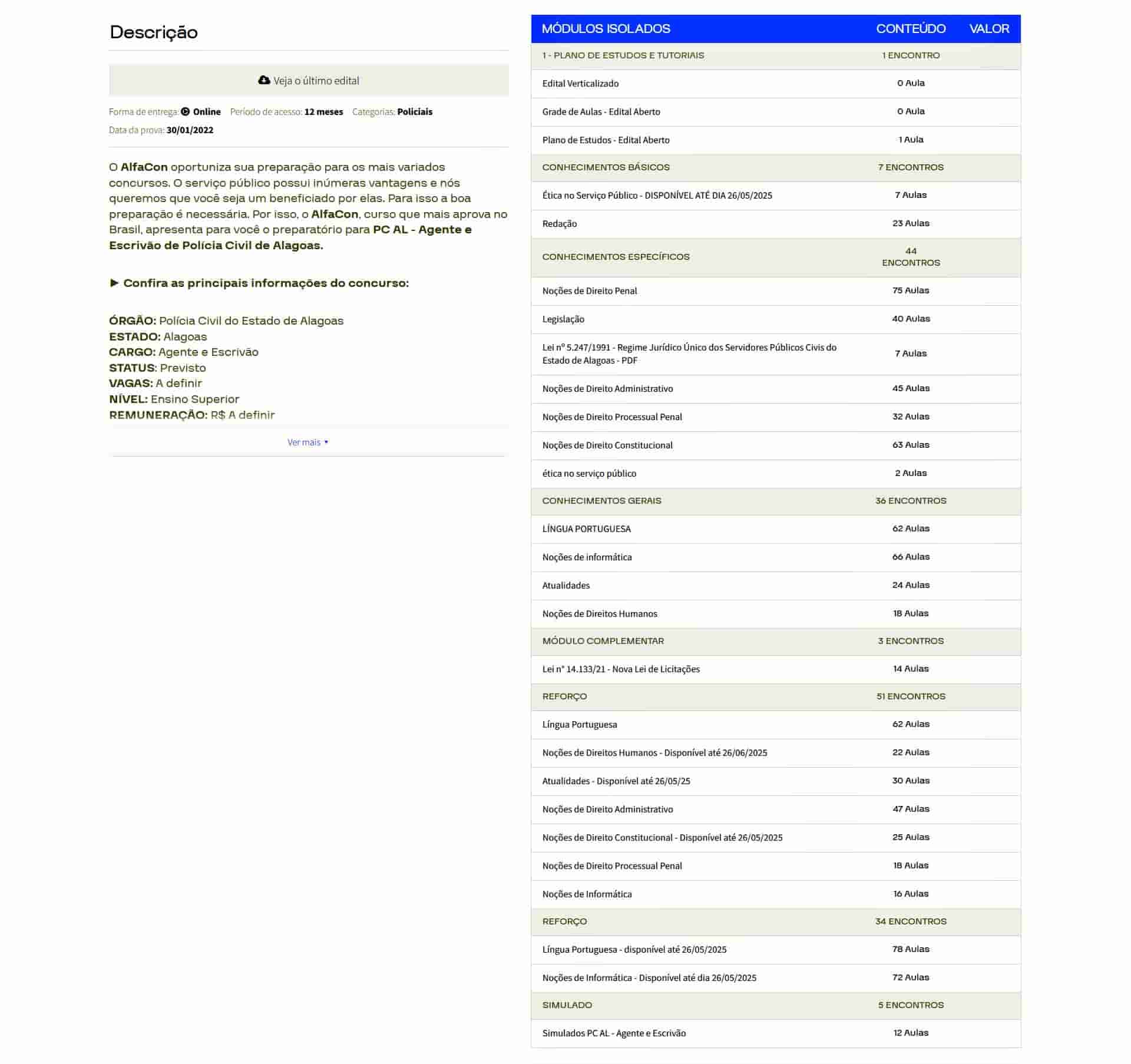 O curso é completo? Sim. O Rateio PC AL – Agente e Escrivão (2026) – ALFACON inclui todas as disciplinas exigidas, além de bônus exclusivos de simulados.