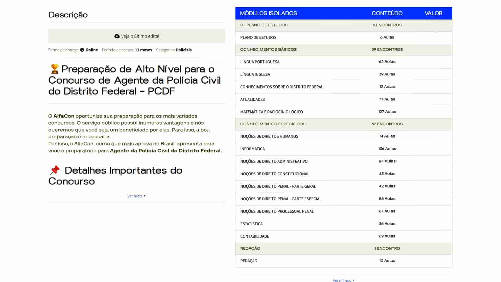 O curso é completo? Sim. O Rateio PC DF – Agente da Polícia Civil (2026) – ALFACON inclui todas as disciplinas exigidas, além de bônus exclusivos de simulados.
