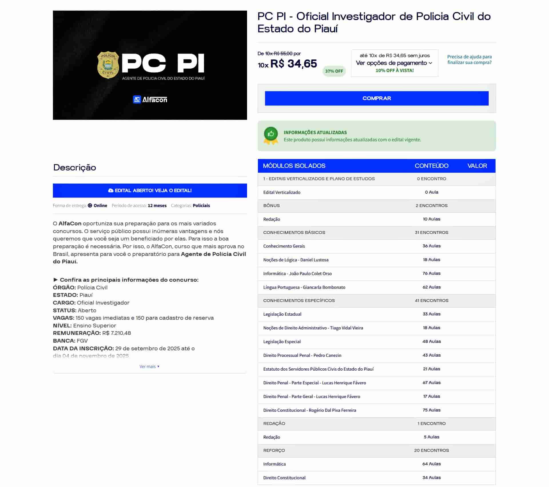✅ O que está incluído no rateio do curso PC PI (PÓS EDITAL) 2025 – Oficial Investigador – ALFACON?