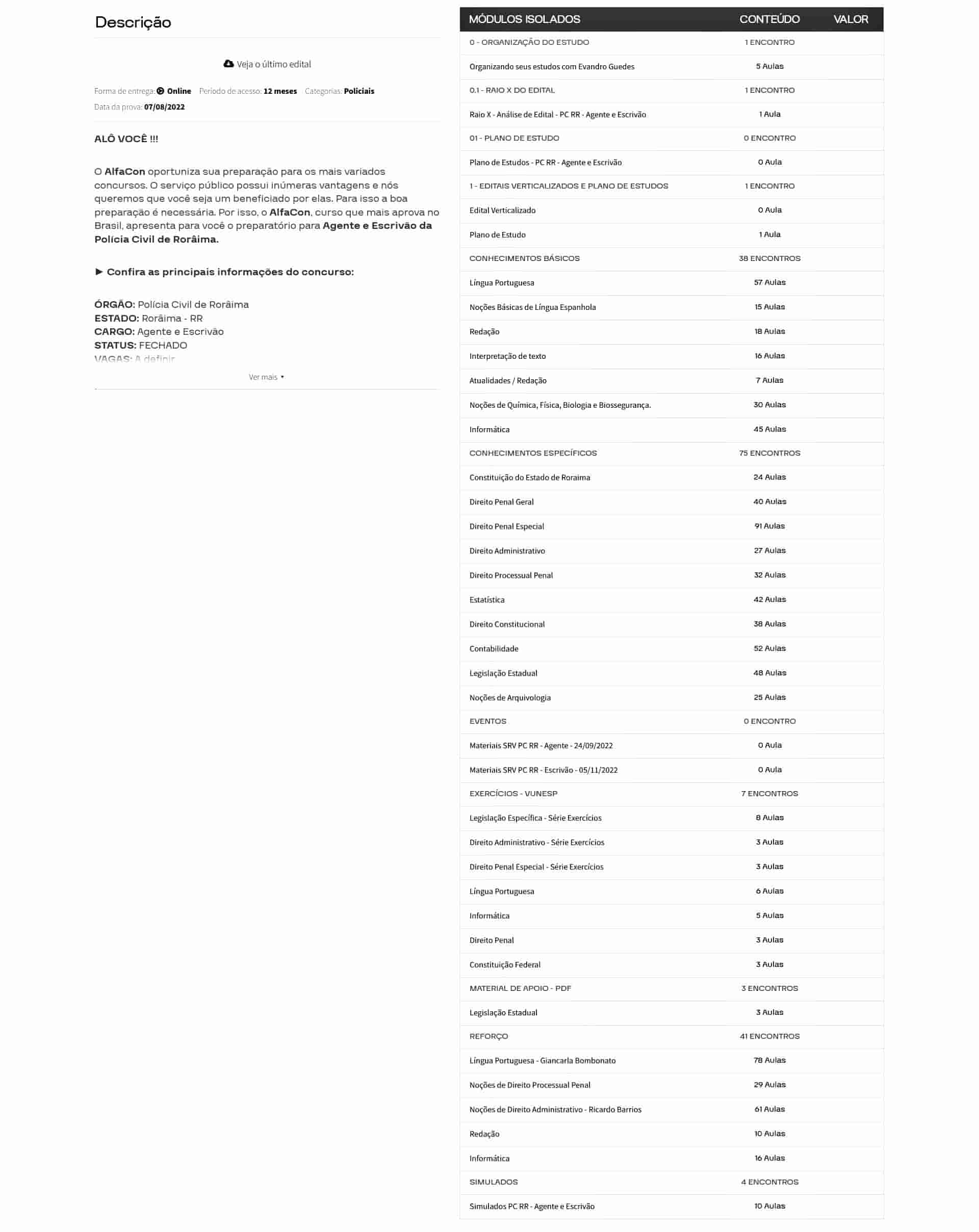 O curso é completo? Sim. O Rateio PC RR – Agente e Escrivão (2026) – ALFACON inclui todas as disciplinas exigidas, além de bônus exclusivos de simulados.