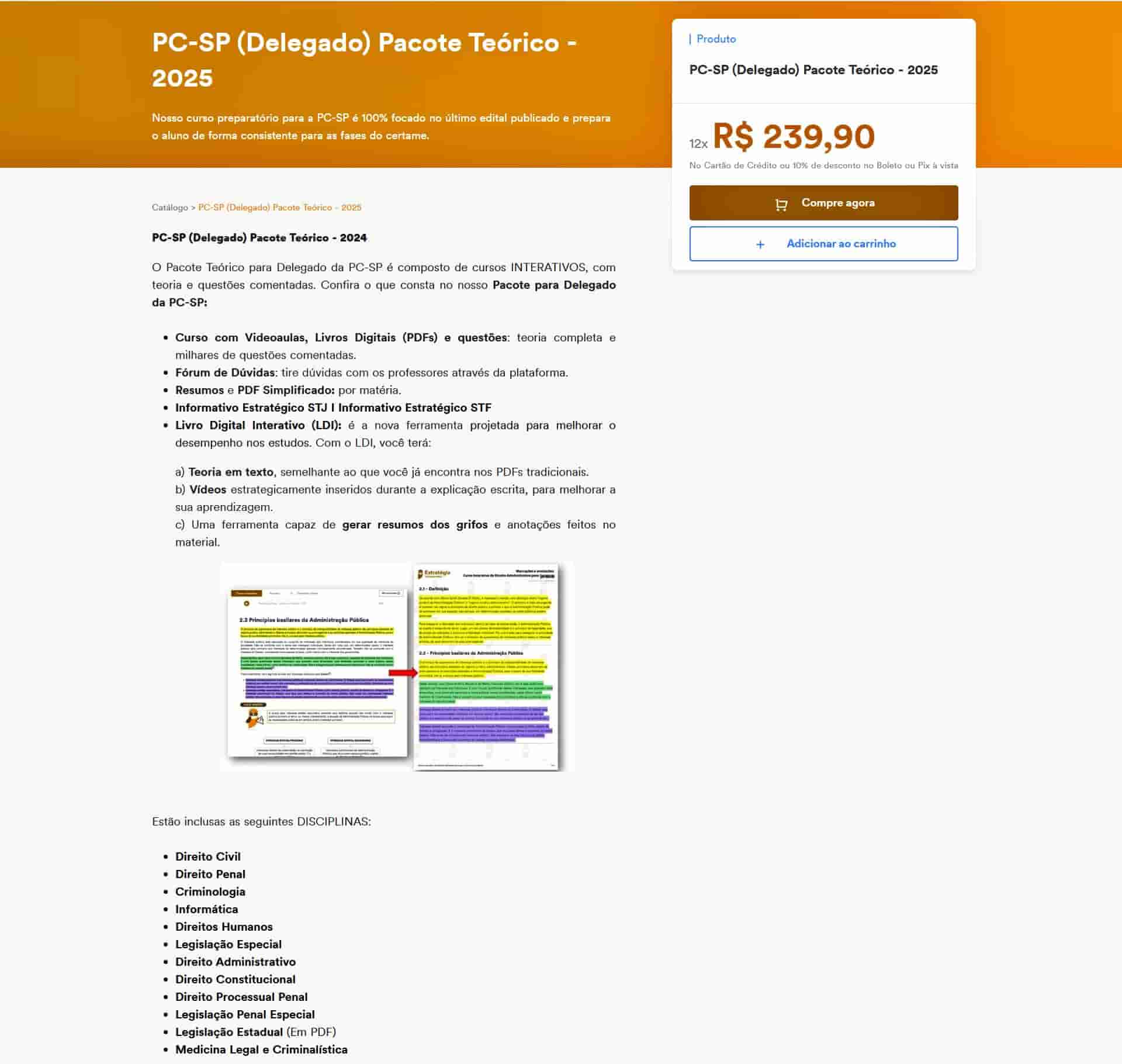 ✅ O que está incluído no rateio do curso PC SP 2025 – Delegado – ESTRATÉGIA?