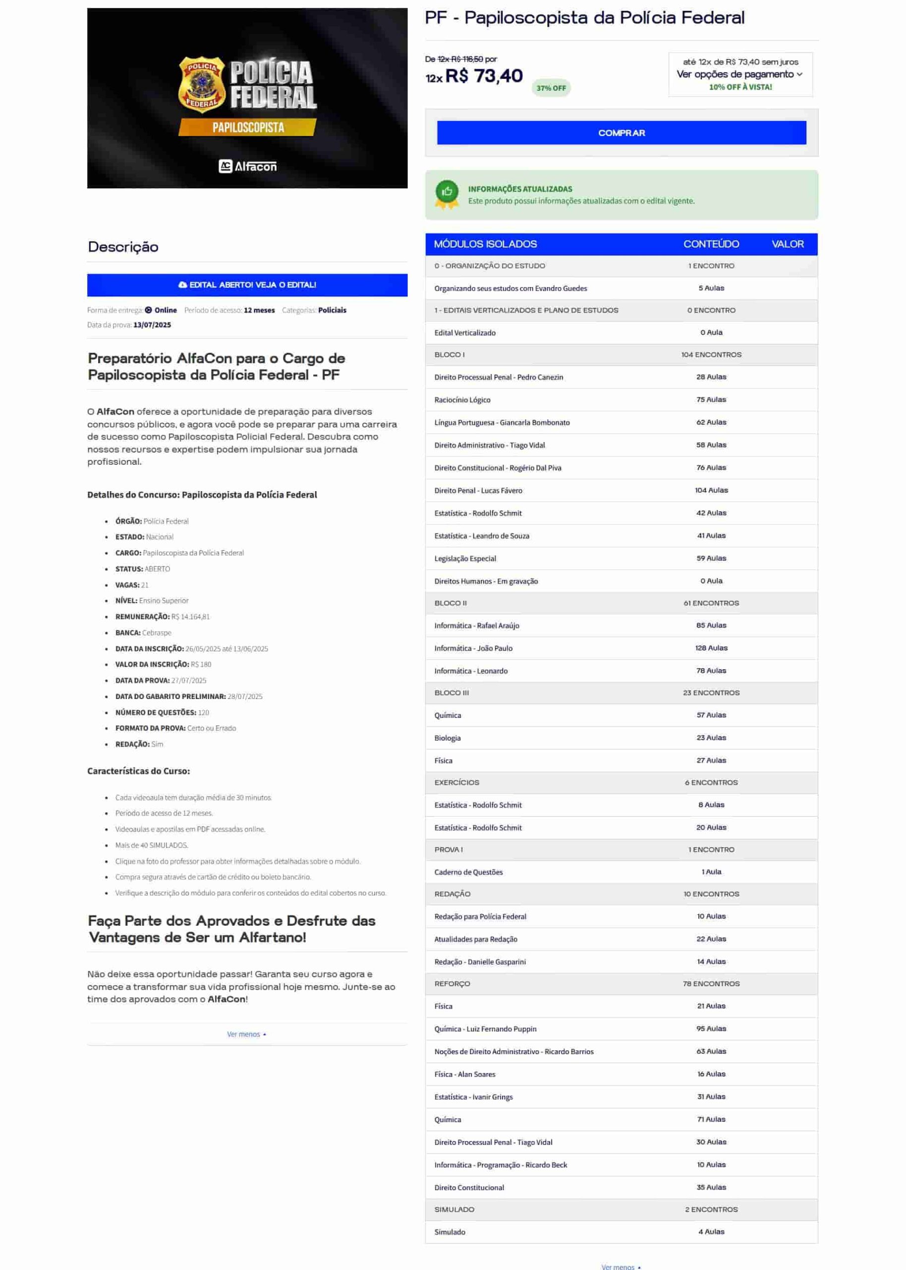 - As atualizações de cursos PÓS-EDITAL ocorrem 1x por semana, já de cursos PRÉ-EDITAL ocorrem 2x por mês.