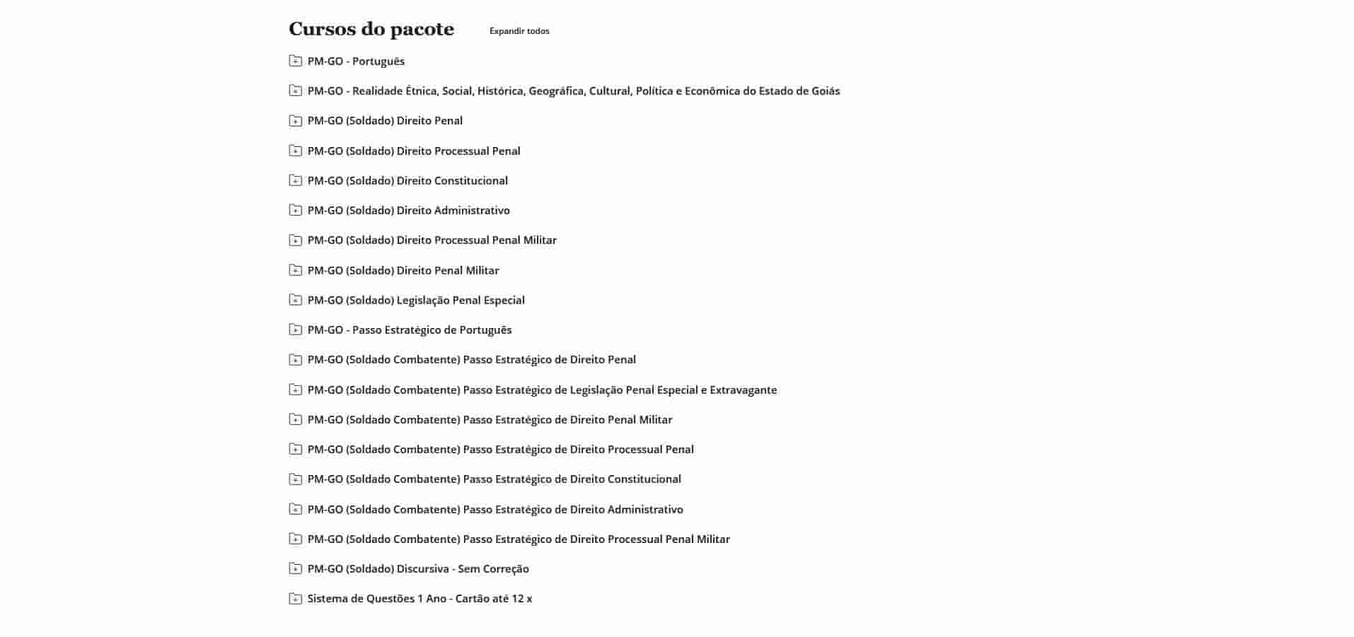 O curso é completo? Sim. O Rateio PM GO – Soldado (2026) – ESTRATÉGIA inclui todas as disciplinas exigidas, além de bônus exclusivos de simulados.