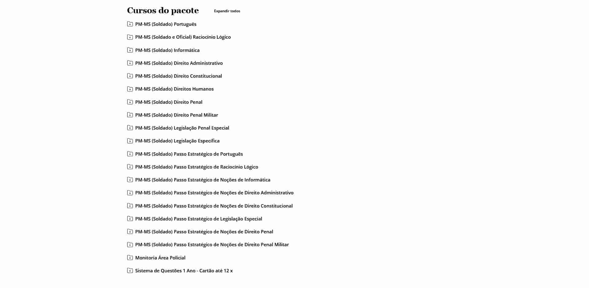 O curso é completo? Sim. O Rateio PM MS (Soldado) 2026 – ESTRATÉGIA inclui todas as disciplinas exigidas, além de bônus exclusivos de simulados.