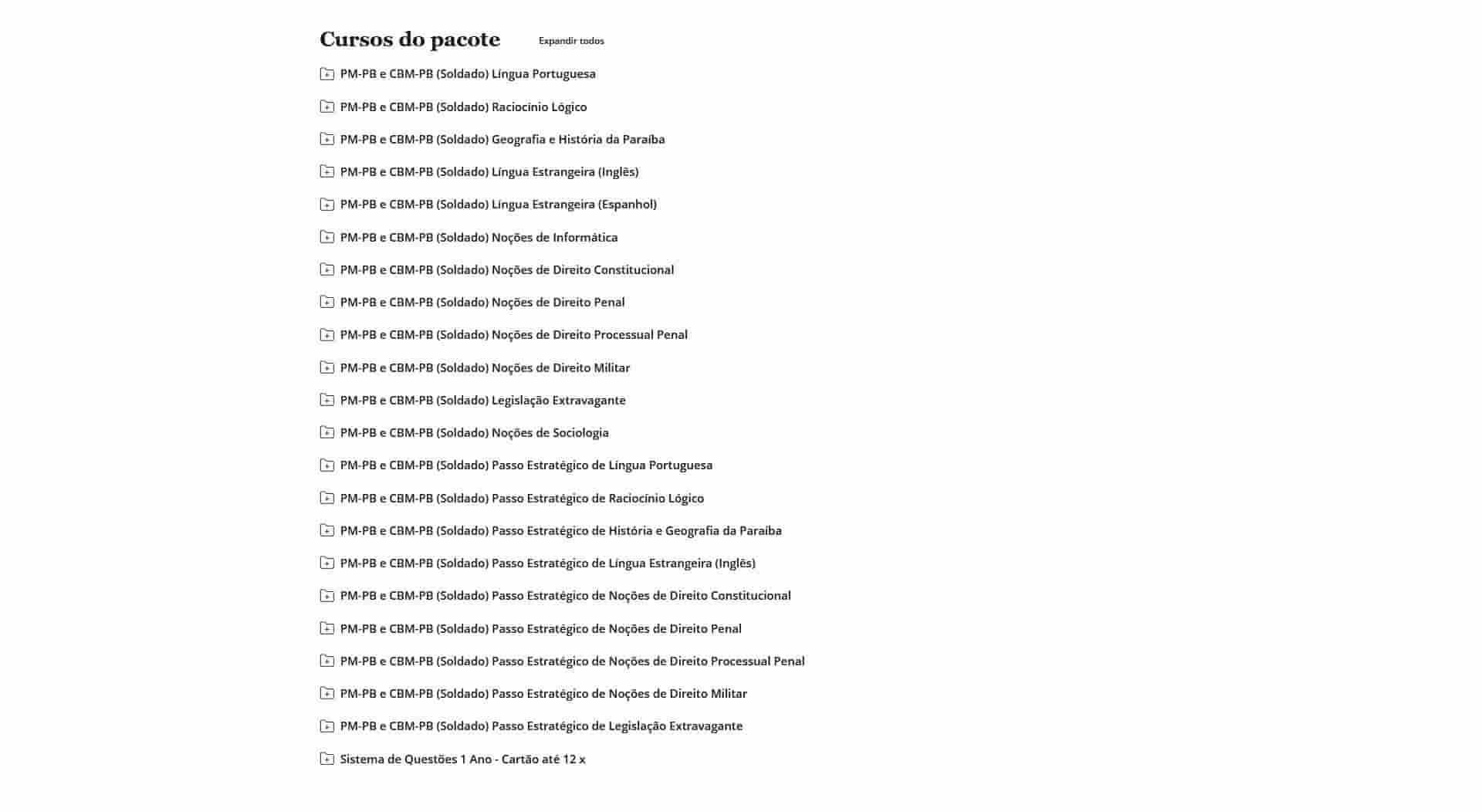 O curso é completo? Sim. O Rateio PM PB – Soldado (2026) – ESTRATÉGIA inclui todas as disciplinas exigidas, além de bônus exclusivos de simulados.