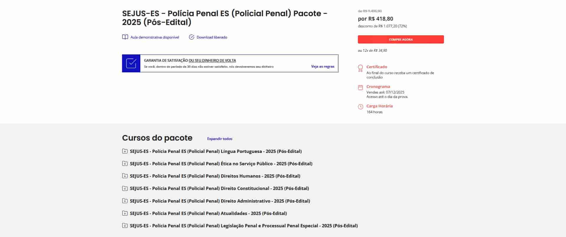 ✅ O que está incluído no rateio do curso PP ES (PÓS EDITAL) 2025 – Policial Penal – ESTRATÉGIA?
