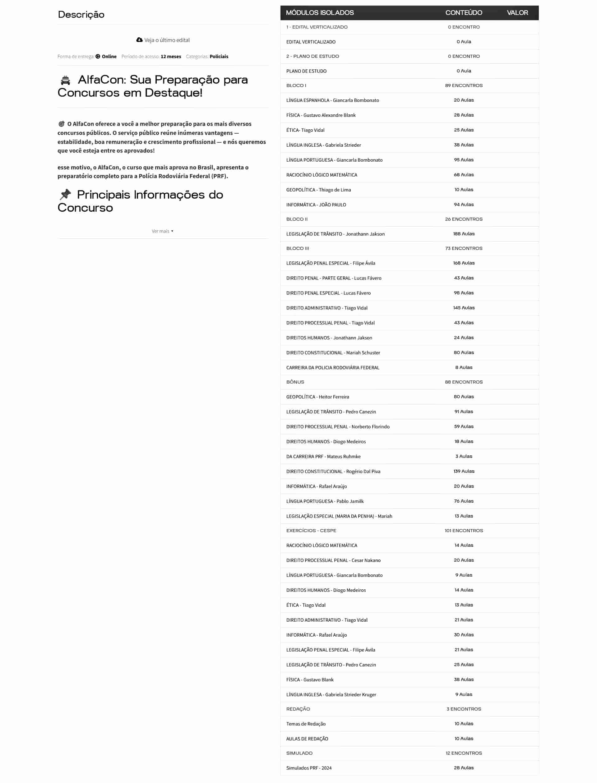 O curso é completo? Sim. O Rateio PRF – Policial Rodoviário Federal (2026) – ALFACON inclui todas as disciplinas exigidas, além de bônus exclusivos de simulados.