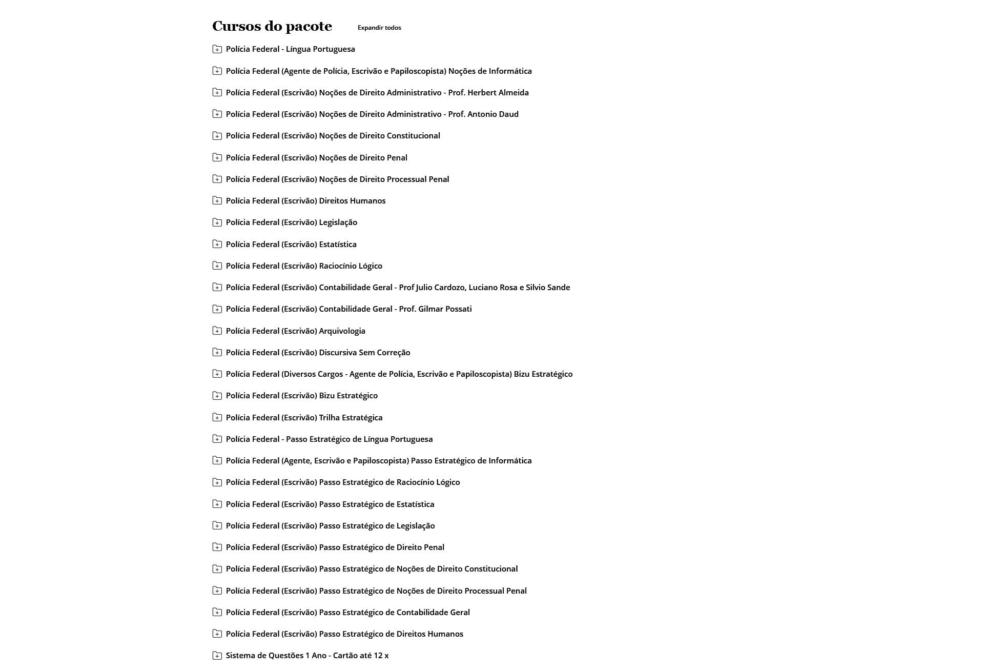 O curso é completo? Sim. O Rateio PF (Polícia Federal) – Escrivão (2026) – ESTRATÉGIA inclui todas as disciplinas exigidas, além de bônus exclusivos de simulados.