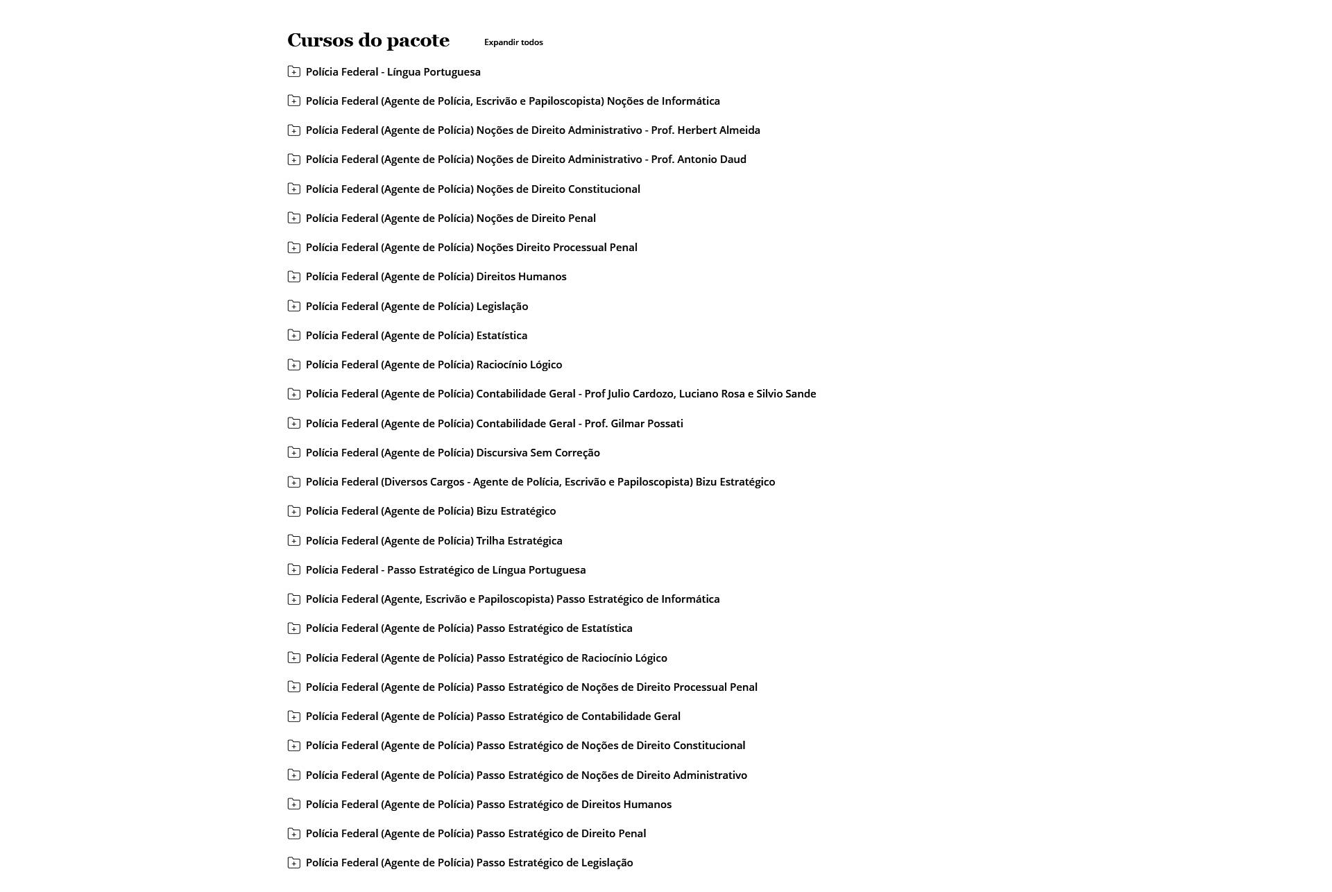 O curso é completo? Sim. O Rateio PF (Polícia Federal) – Agente de Polícia (2026) – ESTRATÉGIA inclui todas as disciplinas exigidas, além de bônus exclusivos de simulados.