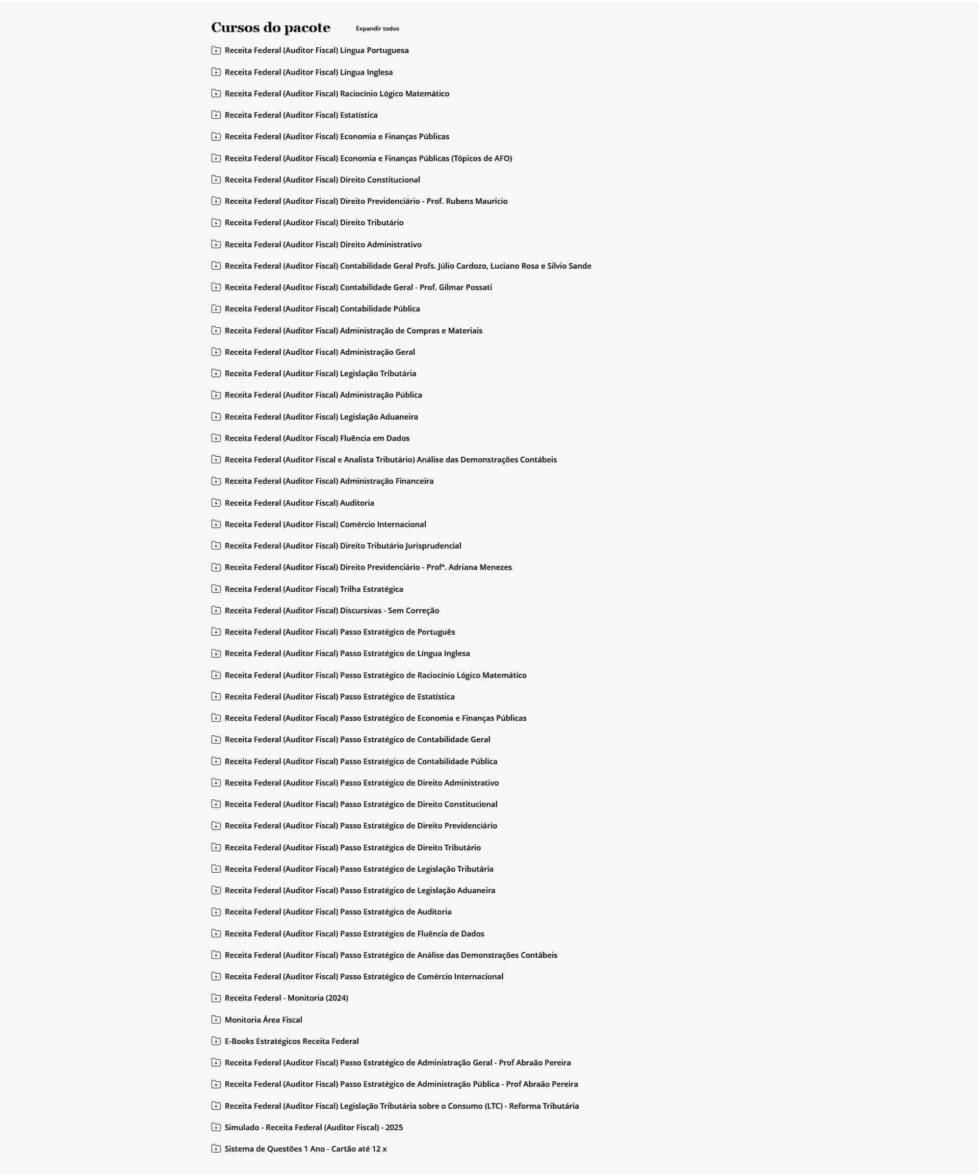 O curso é completo? Sim. O Rateio Receita Federal – Auditor Fiscal (2026) – ESTRATÉGIA inclui todas as disciplinas exigidas, além de bônus exclusivos de simulados.