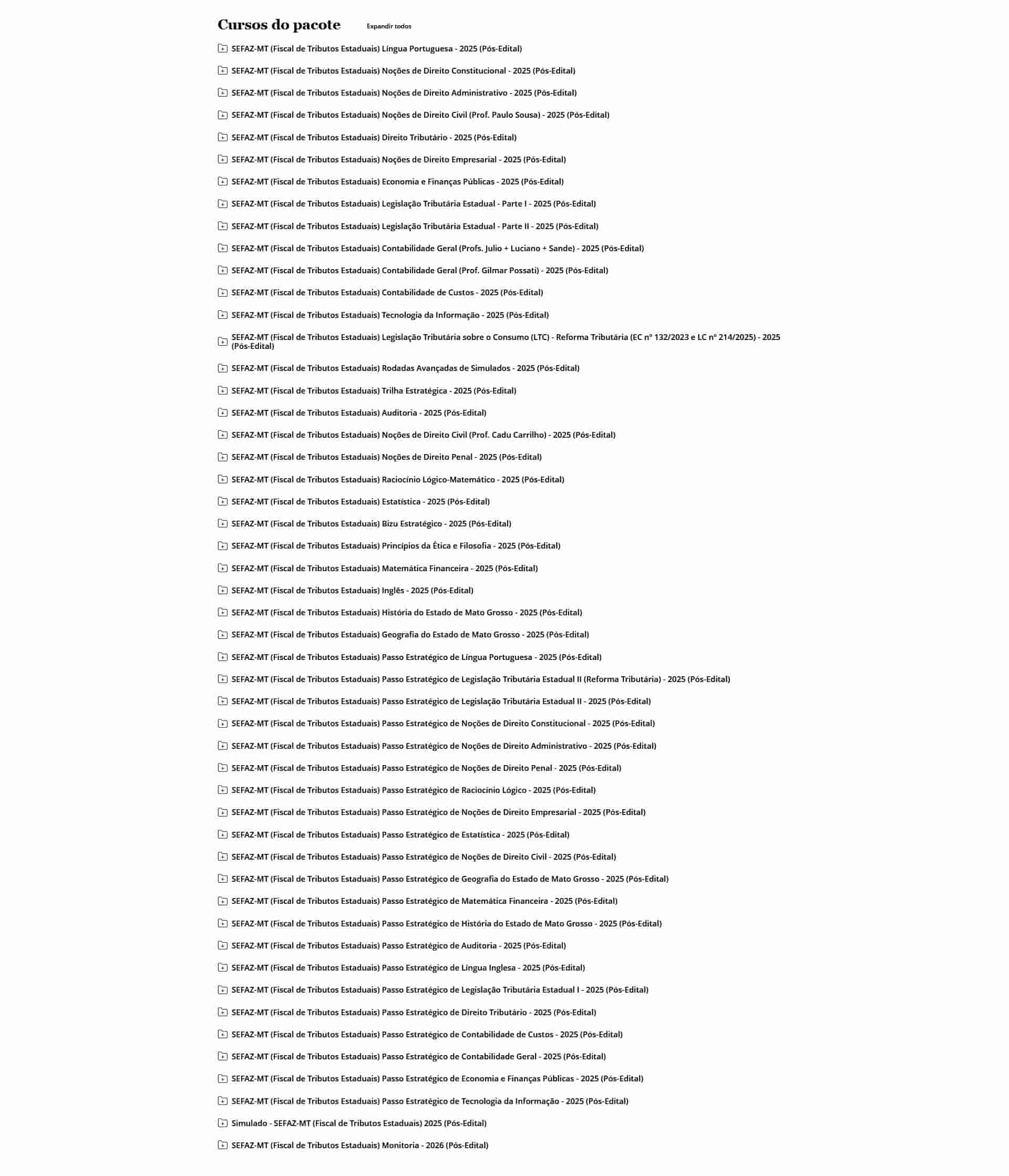 O curso é completo? Sim. O Rateio SEFAZ MT – Fiscal de Tributos Estaduais (2026) – ESTRATÉGIA inclui todas as disciplinas exigidas, além de bônus exclusivos de simulados.