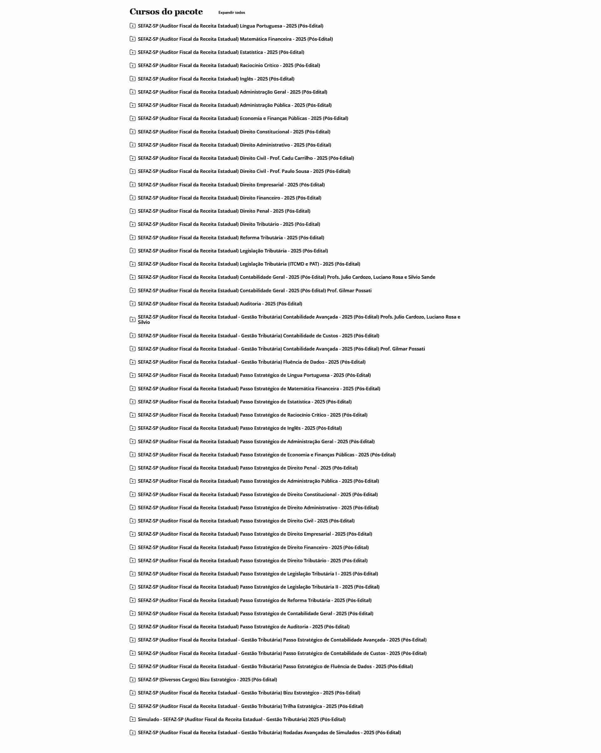 O curso é completo? Sim. O Rateio SEFAZ SP – Auditor Fiscal (2026) – ESTRATÉGIA inclui todas as disciplinas exigidas, além de bônus exclusivos de simulados.