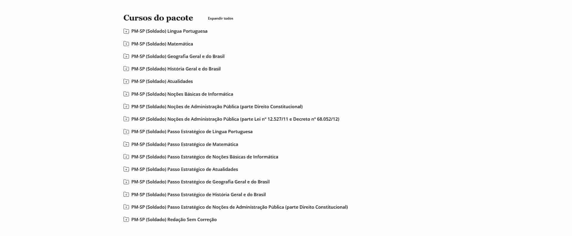 O curso é completo? Sim. O Rateio PM SP – Soldado (2026) – ESTRATÉGIA inclui todas as disciplinas exigidas, além de bônus exclusivos de simulados.