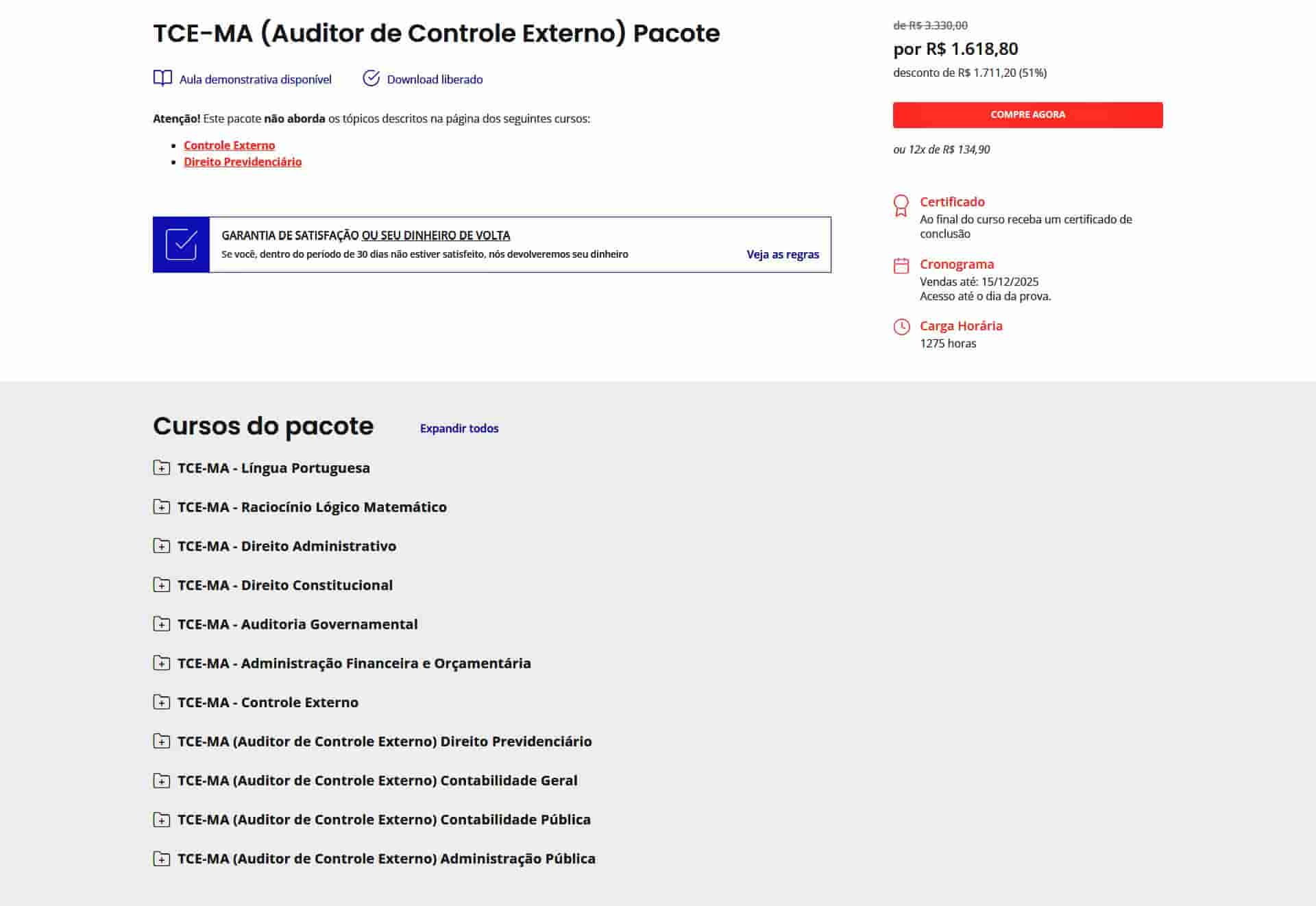 ✅ O que está incluído no rateio do curso TCE MA 2025 – Auditor de Controle Externo – ESTRATÉGIA?