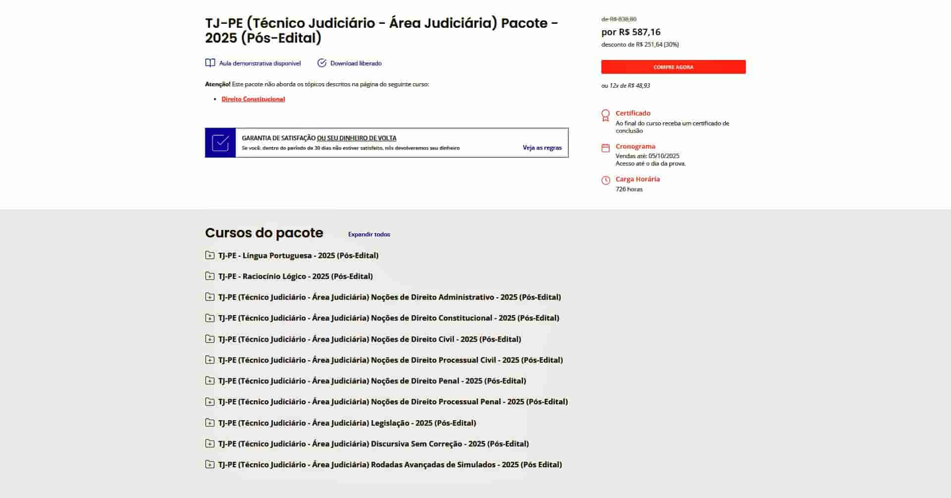 ✅ O que está incluído no rateio do curso TJ PE PÓS-EDITAL 2025 – Técnico Judiciário – Área Judiciária – ESTRATÉGIA?