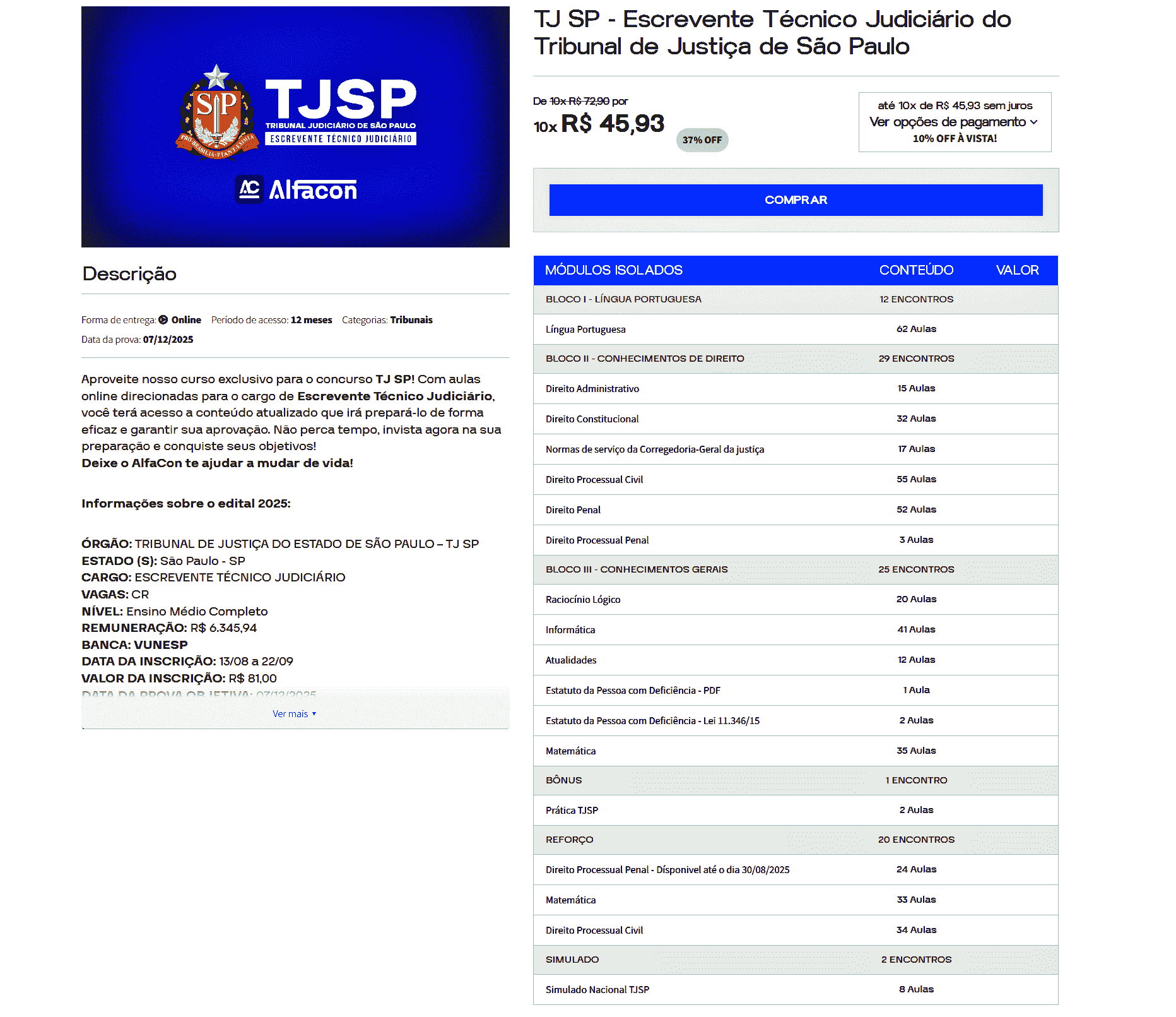 Rateio TJ SP (PÓS-EDITAL) 2025 – Escrevente Judiciário – ALFACON