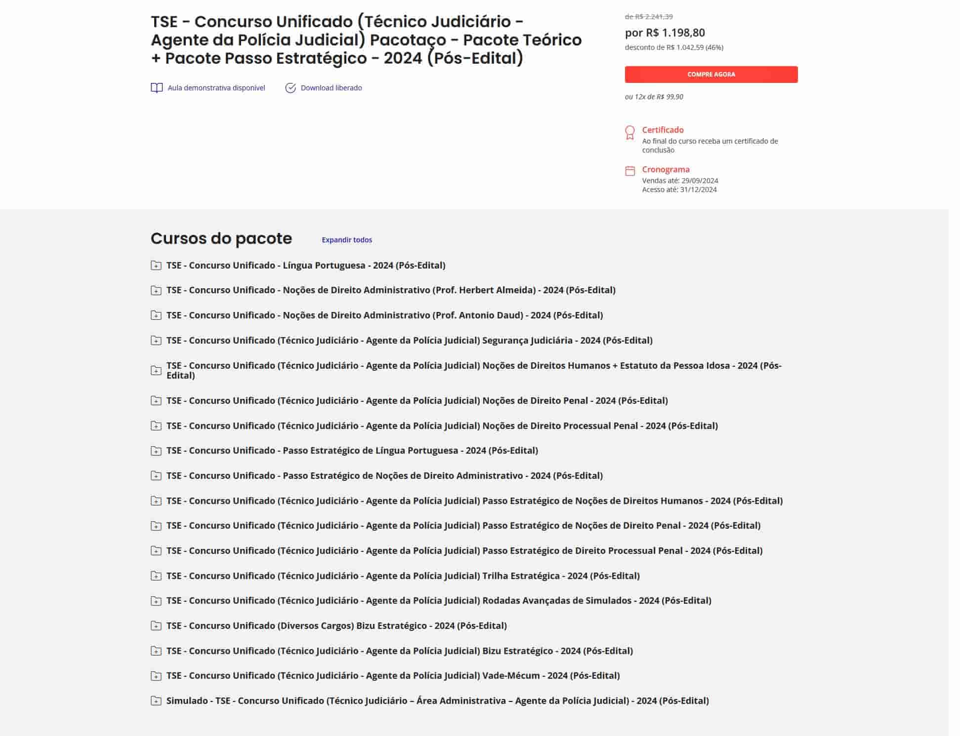 Rateio TSE (PÓS-EDITAL) 2024 – Técnico Judiciário – Agente da Polícia Judicial – ESTRATÉGIA