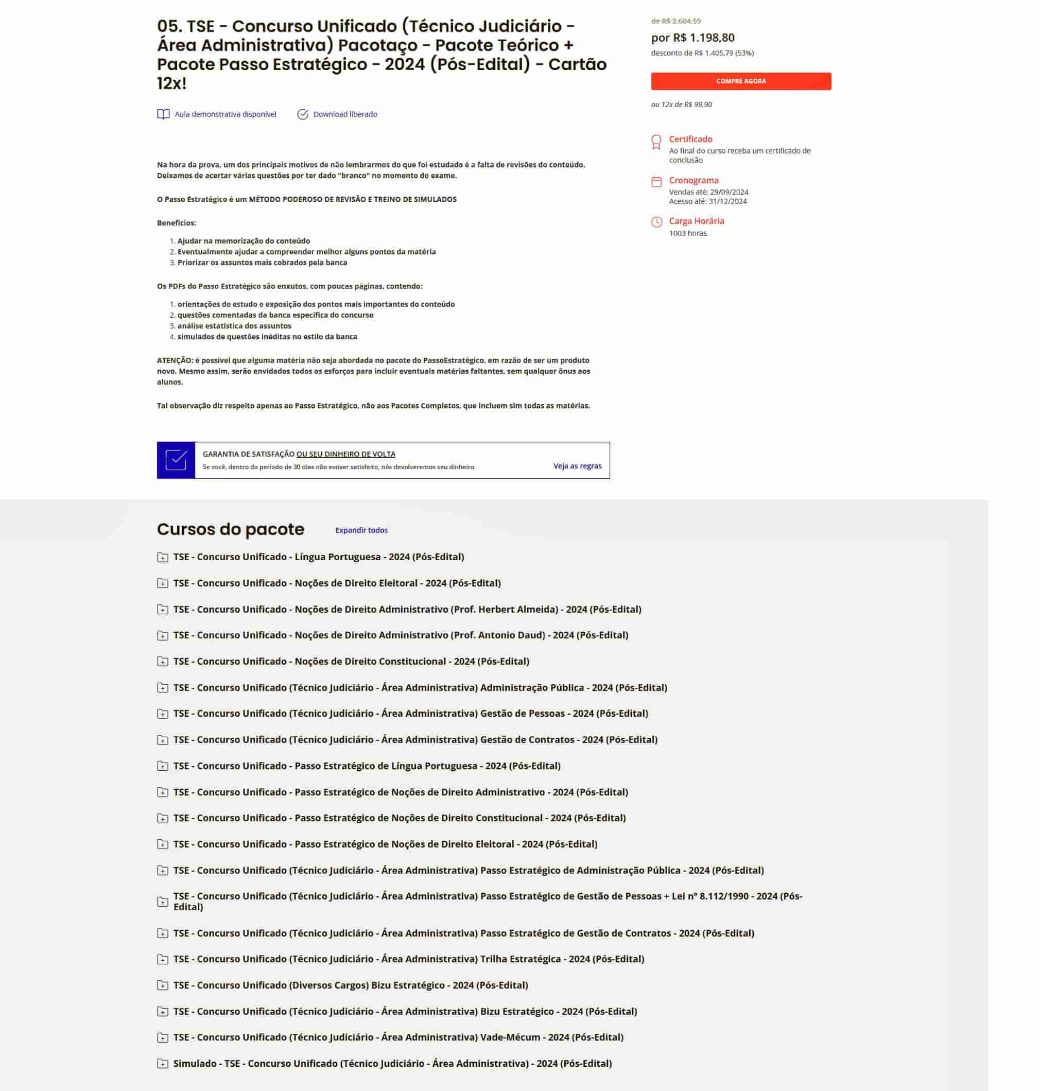 Comprei ontem a noite o curso tse unificado e paguei por pix. Quando será disponibilizado?